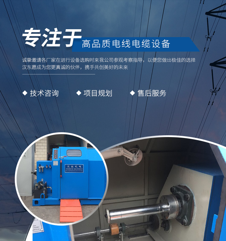 常州漢東機械始創于2006年,是集電線電纜機械設計、開發、制造、安裝、調試為一體化的高科技企業。本公司自開業以來,積極引進日本,歐美等國外電線電纜設備之先進技術,先后成功推出了達到行業先進水平的電線電纜設備,主要產品有擠出、繞包、束線、成纜等電線電纜固定設備。在提供系統設備的同時,還向客戶提供售前技術咨詢、項目規劃、以及售后服務。我公司本著“以人為本、科技先導、用戶為上”的宗旨,為客戶提供牢靠的產品與省心的服務。漢東愿成為您更真誠的伙伴,攜手共創美好的未來! 了解更多+
